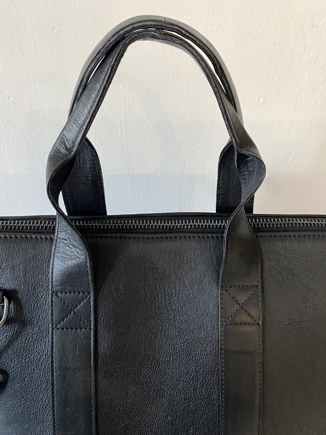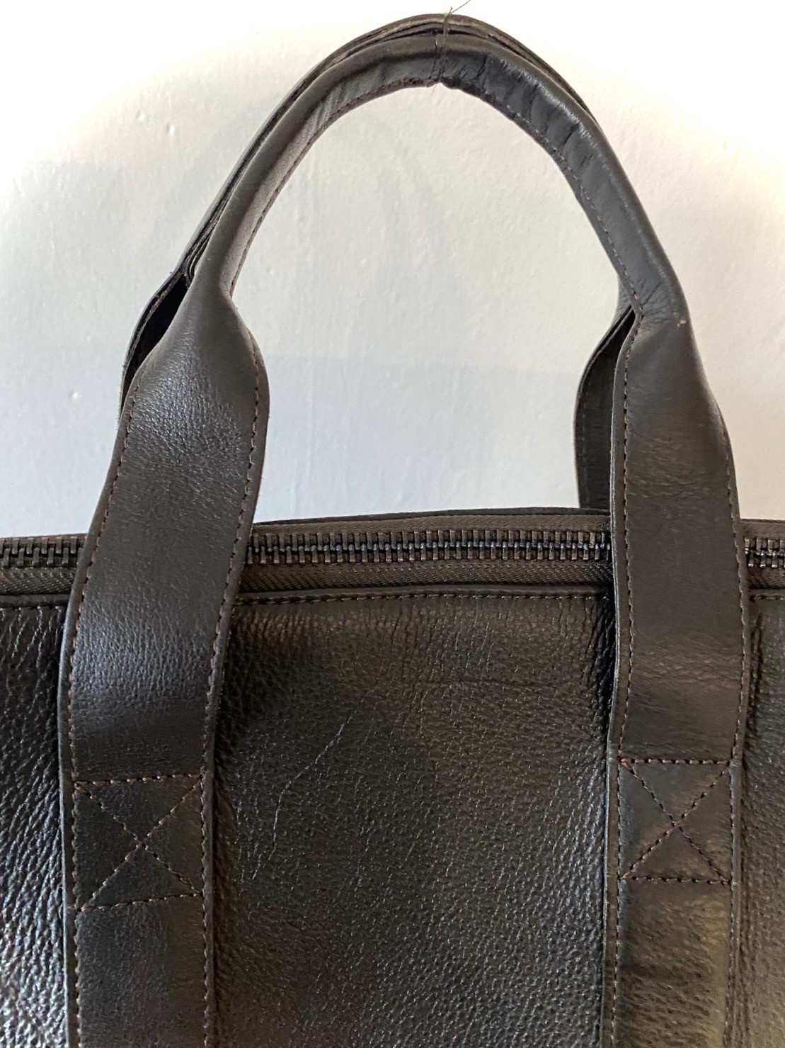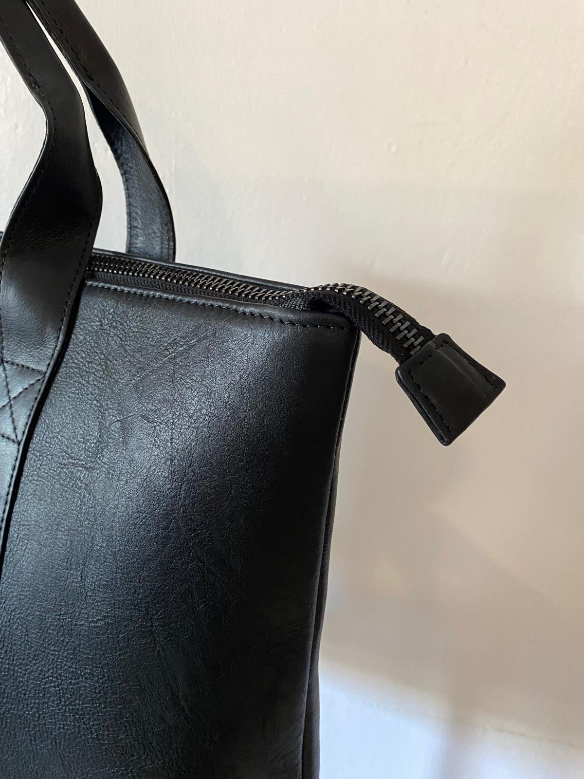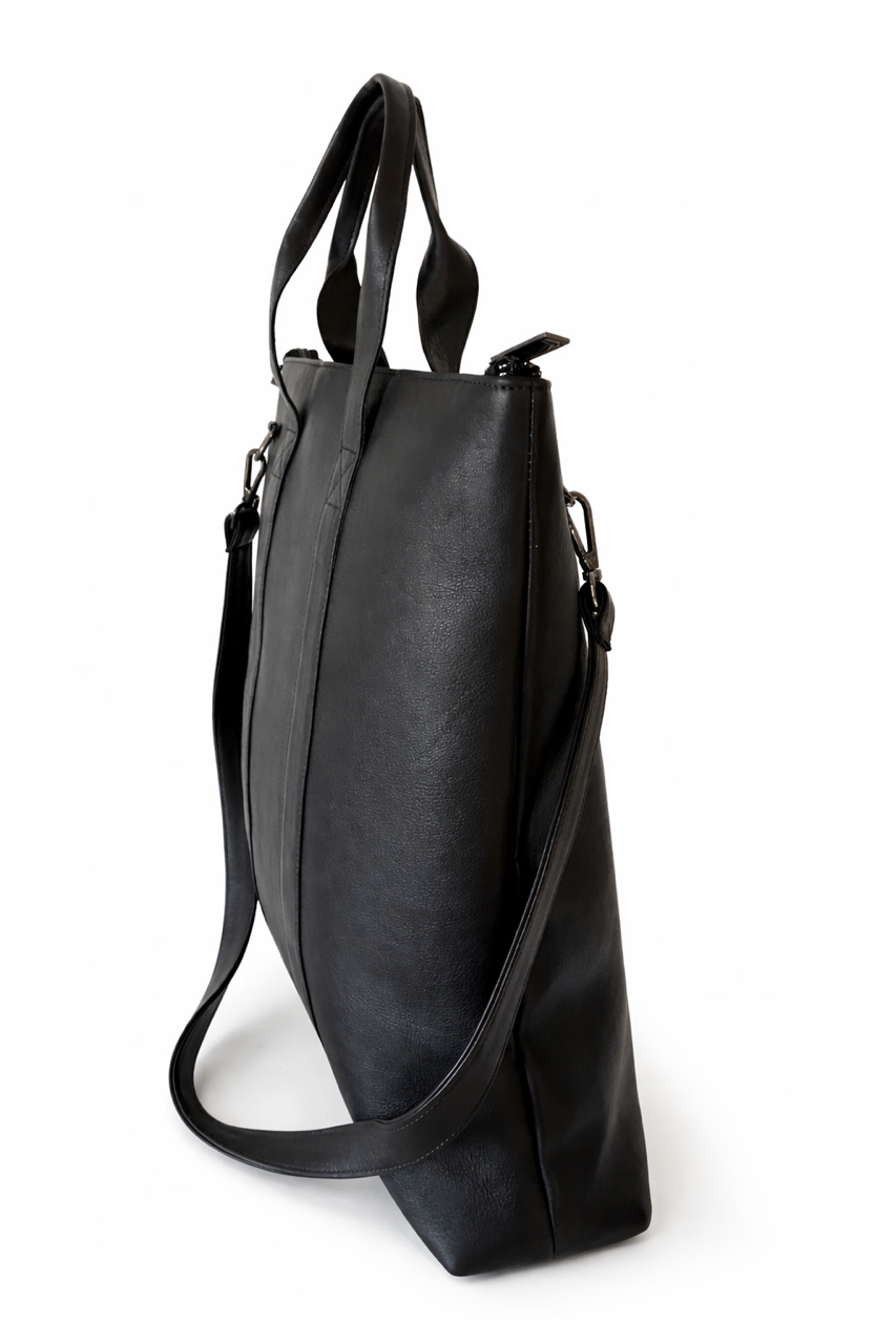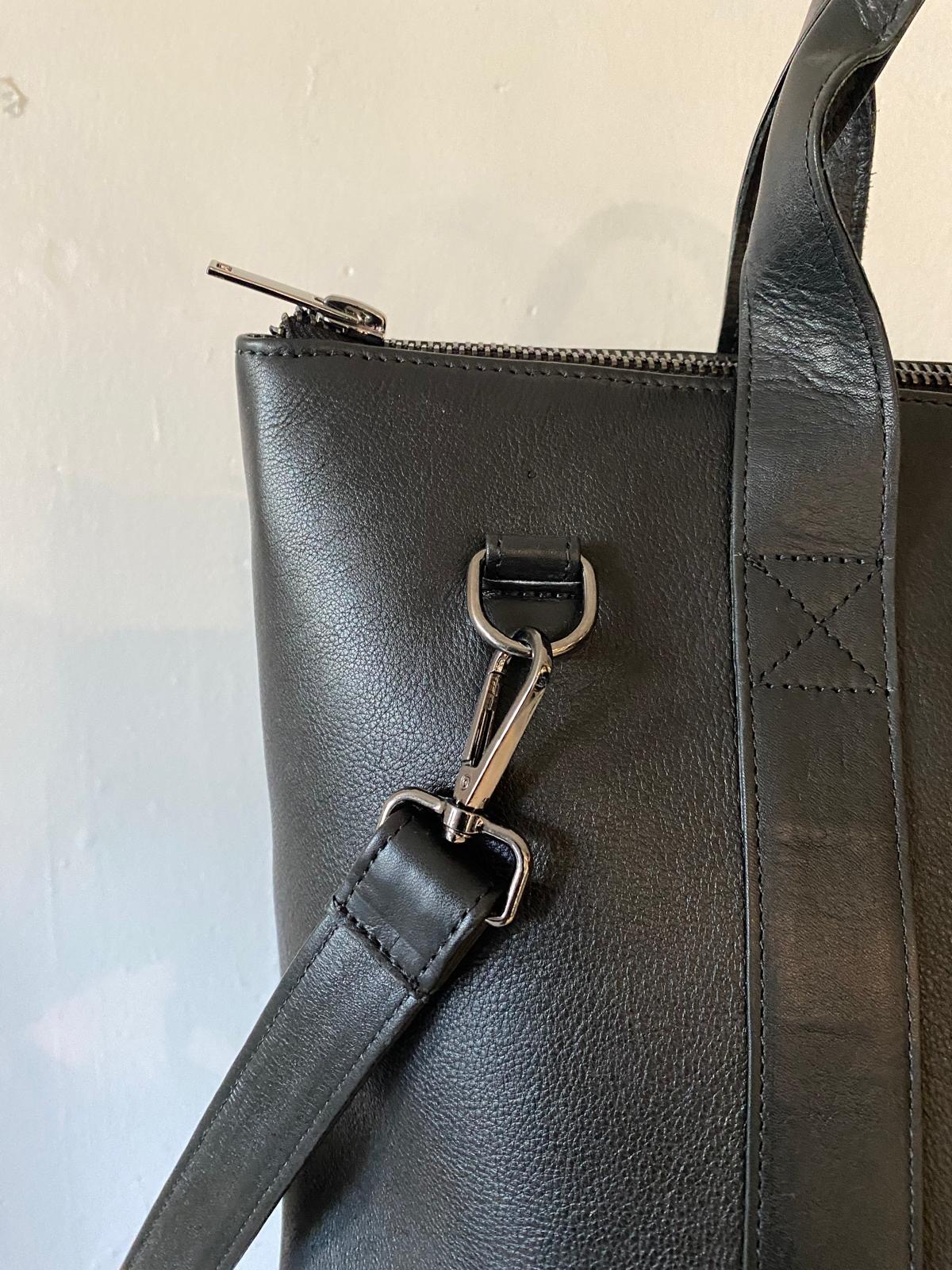 Leather tote bag with shoulder strap (available in chocolate brown or black)